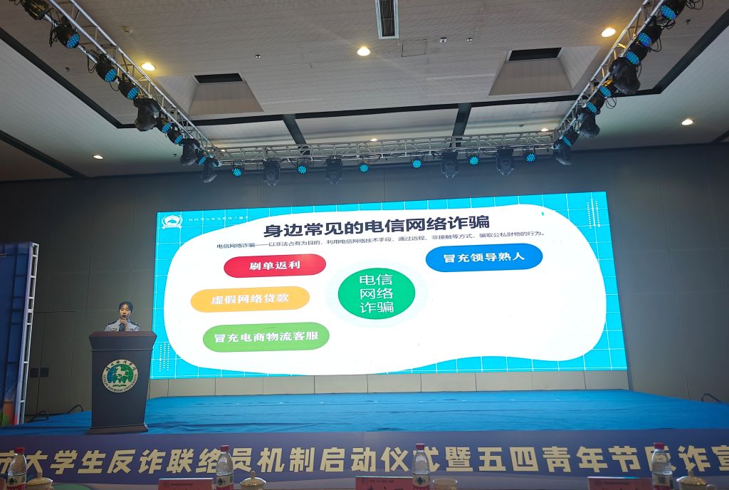 此外,活动还邀请了专业的反诈民警进行现场专题培训,结合近年来发生的典型案例,深入浅出地讲解了电信网络诈骗的特点、作案手法和防范技巧,面对面为同学们讲授防诈反诈专业知识。