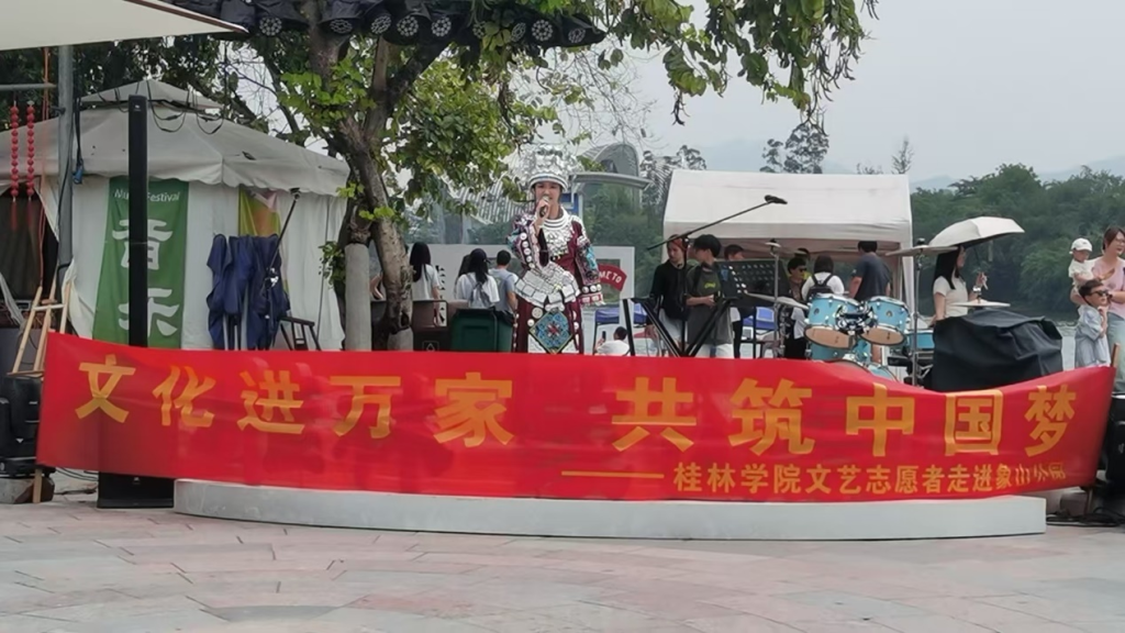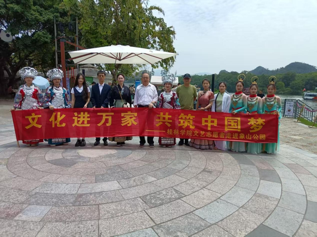 为响应中共中央宣传部等多部门“我们的中国梦文化进万家”活动号召,五一黄金周第一天,桂林学院组织师生文艺志愿者走进桂林市象山景区,为海内外游客奉献了一场精彩的文艺表演,助力桂林市打造世界级旅游城市。