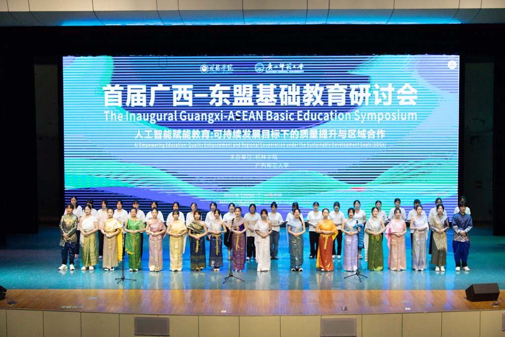 为保障首届广西—东盟基础教育研讨会顺利开展,由我校英语、商务英语、泰语、越南语4个外语专业的7位教师翻译团队围绕“AI 智能赋能教育:可持续发展目标下的质量提升与区域合作”主题,为研讨会开幕式、主旨报告、分论坛及闭幕式等核心环节提供精准的同传与交传服务。