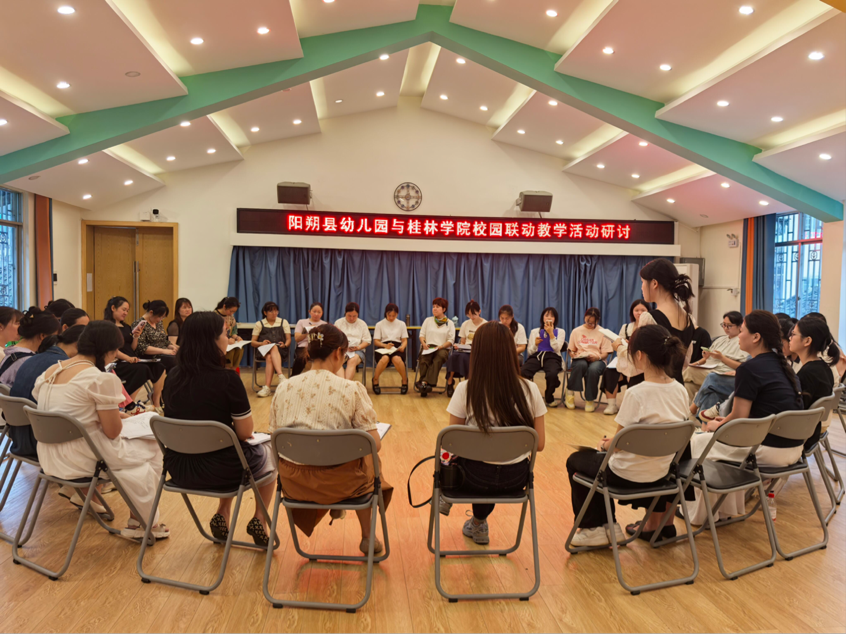 为贯彻落实市委、市政府“做大做强桂林学院”总体部署及《桂林市推进教育高质量发展行动计划》要求,5月23日,教育与音乐学院学前教育教研室赴阳朔县幼儿园开展“校&园”联动教学研讨活动,顺利完成本学期首次“走出去”任务,搭建起校地交流合作的桥梁。
