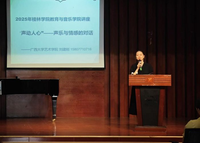 讲座中,针对师生广泛关注的科学发声等热点问题,刘建刚副教授不仅进行了精辟的理论阐释,还现场邀请声乐专业学生进行示范演唱,并依据每位学生的音色特点及作品要求,量身定制训练方案。在互动过程中,刘教授精准点拨,引导学生即时调整发声位置、气息支撑与情感投射,在细微的声音调整间,有效优化了音质,显著提升了音乐表现力,实现了教学相长的示范效果。