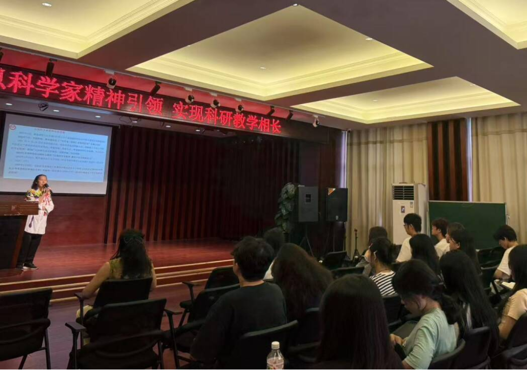 本次讲座特邀广西首批科学家精神宣讲团成员、九三学社广西区委原宣传部部长杨丽英作主题报告,讲座主题紧扣时代脉搏——《以科学家精神引领,实现科研教学相长》。