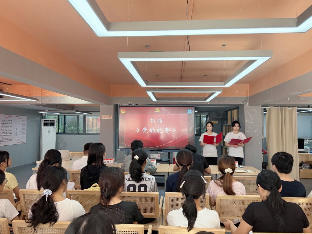 “仰望镰刀和铁锤,火红的旗帜无比厚重……”深情而铿锵的诵读声在会场回荡。在经典诵读环节,同学们以饱满的热情和真挚的情感进行演绎,共同回望党的峥嵘岁月,讴歌党的丰功伟绩。字字句句,饱含对党的无限忠诚与热爱,在声情并茂的诵读中,红色基因跨越时空,激荡起强烈的情感共鸣,让革命精神薪火相传。