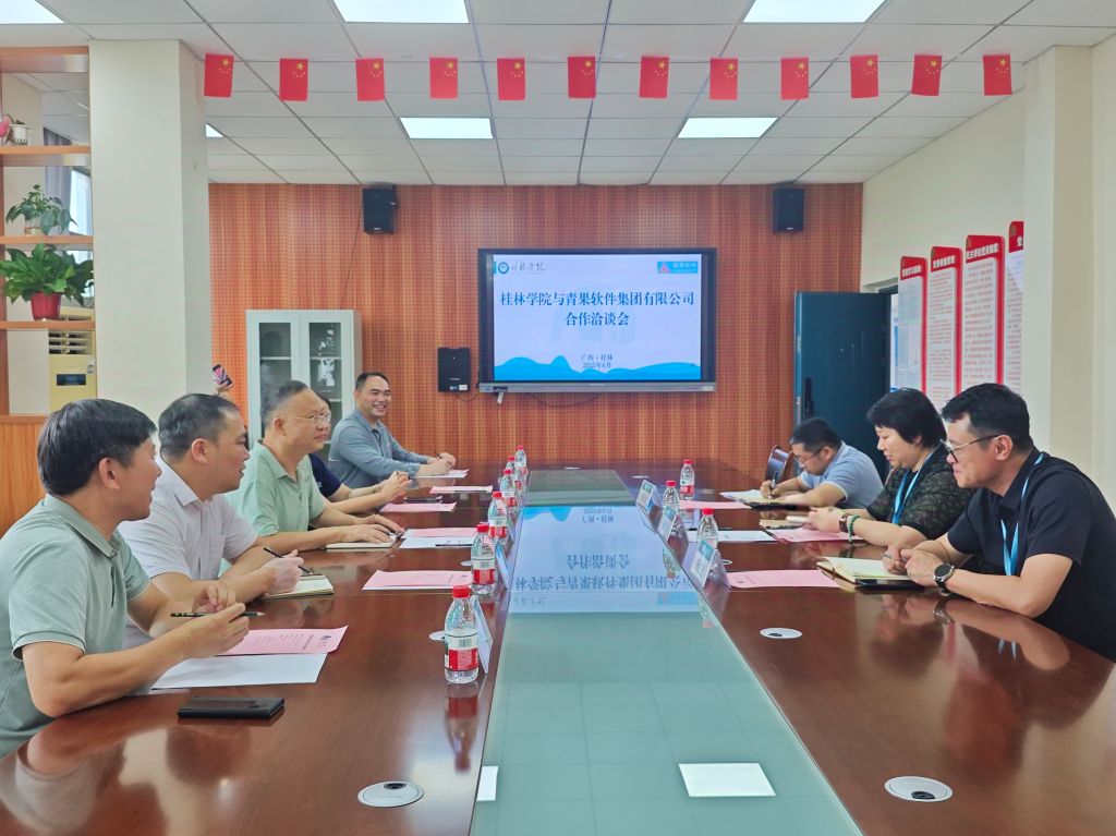 6月27日下午,青果软件集团有限公司一行到学校洽谈合作,双方在知善楼8312会议室举行校企合作洽谈会。副校长杨庆庆主持会议,青果软件集团有限公司董事长张光铎、副董事长刘萍等企业领导,以及相关职能部门和二级学院负责人参会。