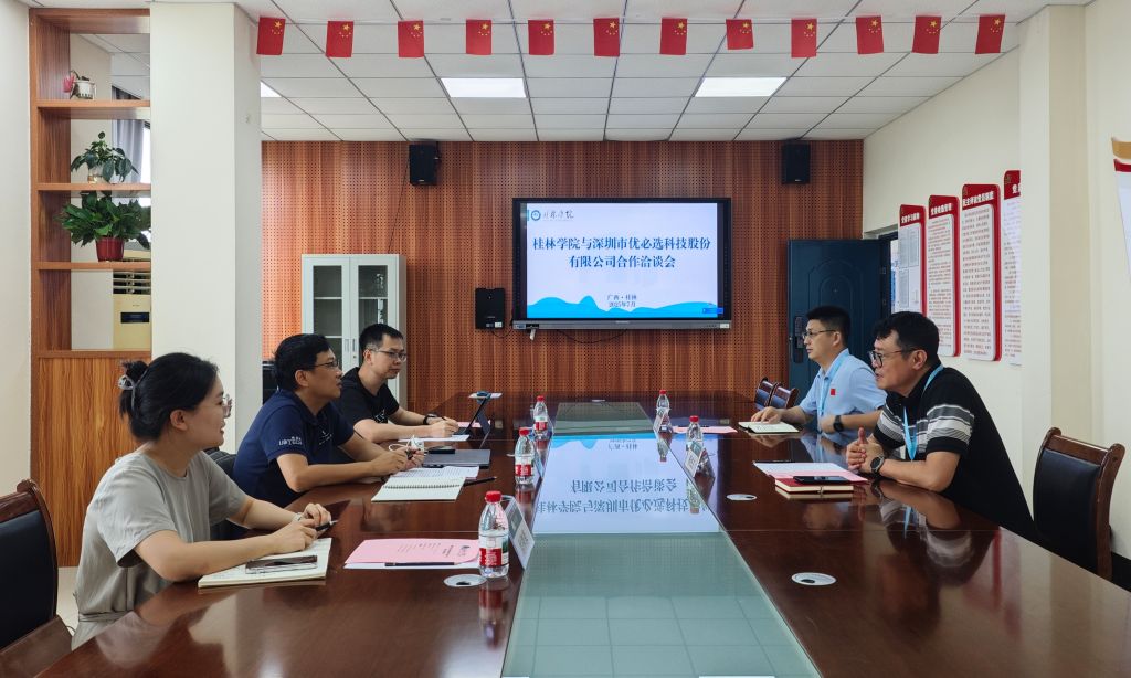 教务处常务副处长介绍了学校的基本情况及人工智能领域的布局。我校近期已成立人工智能学院,其主要职能包括人工智能专业人才培养、赋能传统专业内涵升级、提升全校学生人工智能素养以及对接桂林人工智能产业需求。他表示,学校在人工智能通识教育方面已有相关方案,且认同优必选科技的理念,该方案能满足人工智能通识教育与专业教育相结合的需求。此外,我校旅游与体育健康学院设有运动康复、健康服务与管理等专业,正准备对接桂林的康养产业,希望能与优必选科技在机器人训练、康养场景应用等方面开展合作,形成“企业生产、高校训练、市场应用” 的闭环模式。