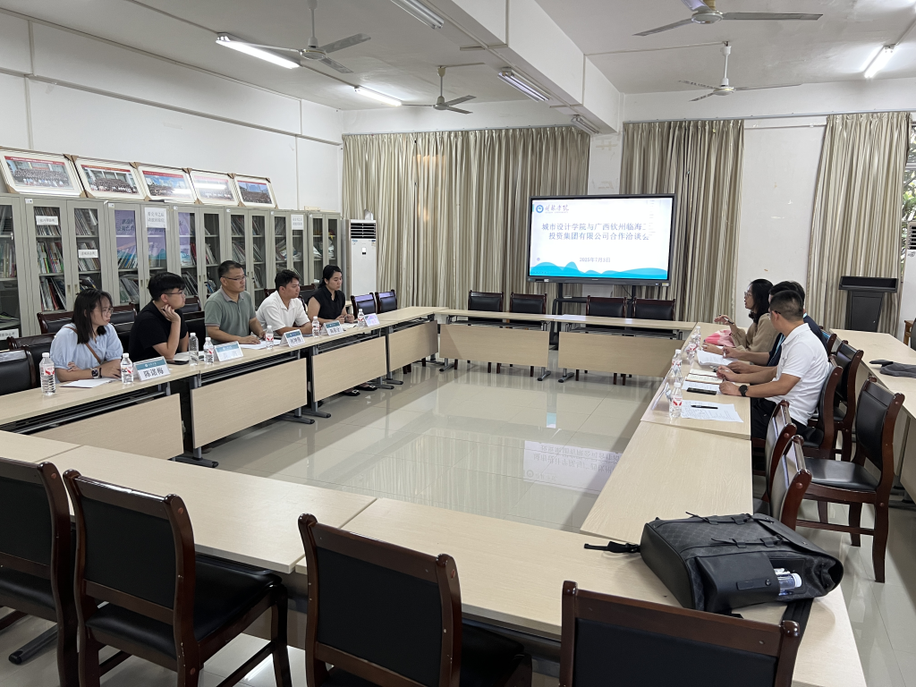 7月4日下午,广西自贸区临海食品有限公司业务经理何坤伟、广西自贸区临海供应链有限公司业务经理黄铭一行5人到访城市设计学院,就第二届“临海杯”品牌策划设计大赛合作事宜进行洽谈。城市设计学院行政负责人、教学工作负责人以及视觉传达设计专业教研室相关负责人参加洽谈会。