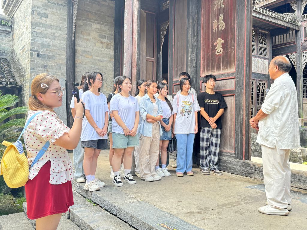实践团深入江头村文化遗迹,用镜头细致记录古建筑群的飞檐斗拱与门楼上的龙凤雕刻,将爱莲家祠的庄重轮廓通过线上平台广泛传播。团队成员梳理景点背后的文化脉络,为旅游导览整理详实的讲解素材,让历史遗存不再是冰冷的建筑标本,而是可触摸、可感知的文化记忆。在聪明井潺潺的水声中,“清者自清”的哲思穿越时空,依旧启迪着每一位到访者的心灵。