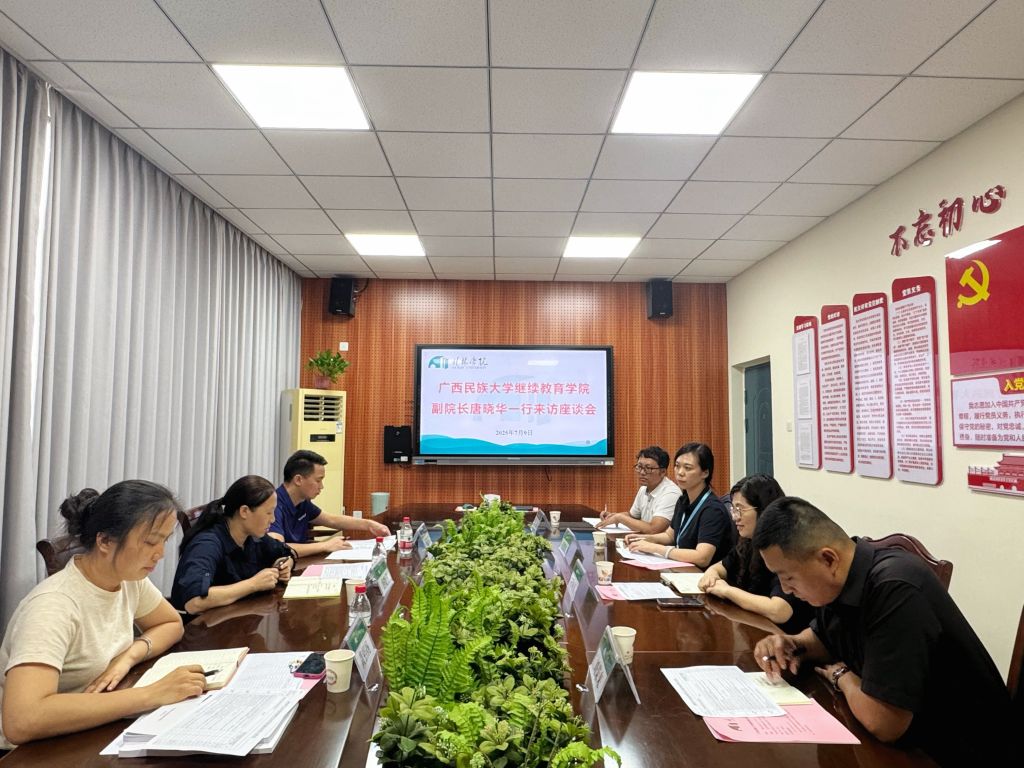 为深化协同推进高等学历继续教育相关工作,7月9日下午,广西民族大学继续教育学院副院长唐晓华一行莅临我校检查校外教学点工作。广西民族大学继续教育学院副院长唐晓华、继续教育学院相关负责人,我校继续教育学院负责人及全体教师参加座谈会。会议由我校继续教育学院负责人主持。