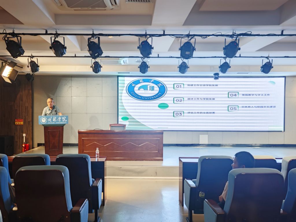 院长对暑假期间针对教育部本科教学合格评估开展的阶段性工作进行了全面总结。他表示,学院在评估准备过程中展现了良好的精神风貌,但也需针对薄弱环节持续改进。随后,他对新学期工作作出部署:一是以党建工作为引领,推动党建与业务深度融合;二是聚焦迎评工作,细化任务清单,确保评估目标达成;三是统筹常规教学与学工管理,优化课程体系,提升学生综合素质;四是深化实践育人,通过校企合作、校园文化活动等打造特色育人品牌。莫院长强调,全院上下需以评促建,推动学院内涵式发展。