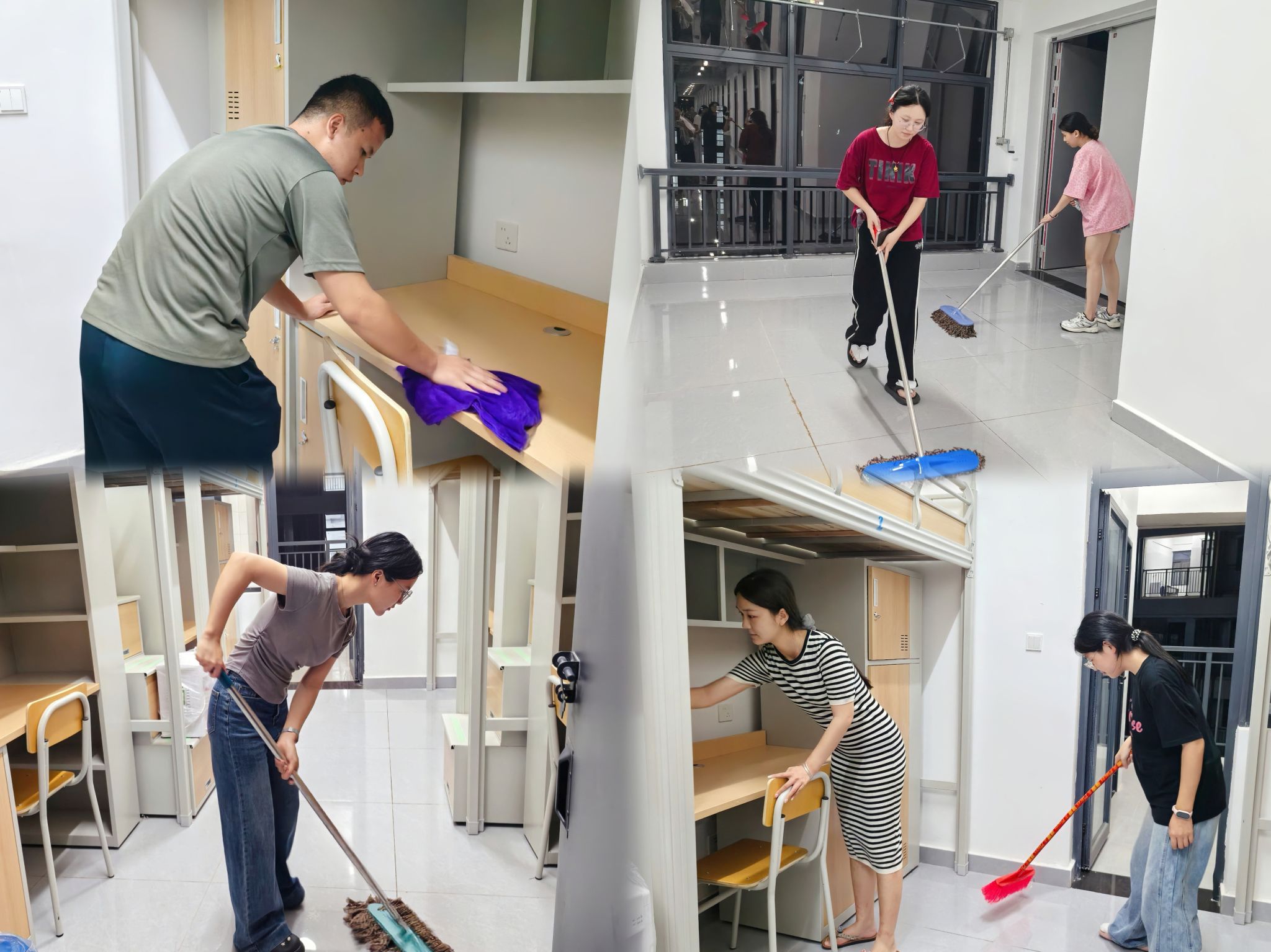 为确保2025级新生入住整洁舒适的宿舍环境,9月5日晚,文化与传媒学院积极动员学生党员、入党积极分子及团学干部组成志愿者服务团队,深入学生宿舍开展清洁整理工作。学院党总支副书记、团总支副书记以及2025级新生辅导员共同参与。