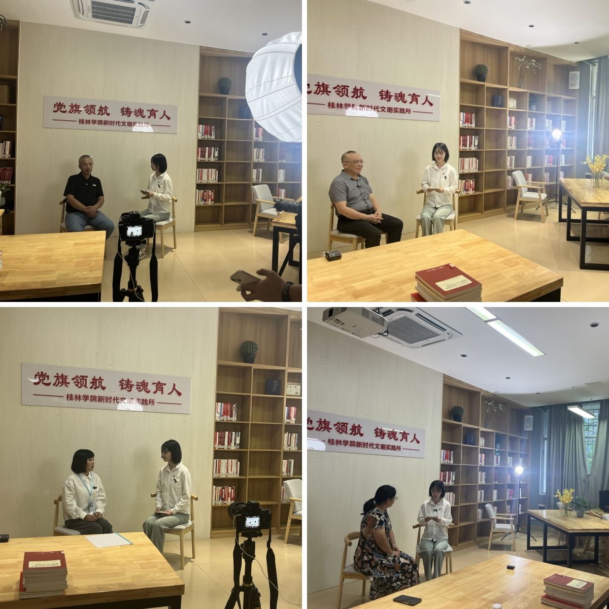 访谈中,老师们结合自身教育经历,围绕“教育劳动平衡与创新”“劳动美学价值”“教学与科研融合”等核心话题分享感悟。傅广生教授谈及学院教学管理与课程体系建设时,细致阐述如何平衡“繁琐劳动”与“创新目标”,并提炼出“务实为基、创新为翼”的劳动智慧;赖晓葭教授、陆巧华副教授、欧炼芬副教授聚焦外语教学,分享通过课堂设计让学生感受 “语言学习劳动美”的实践,同时揭秘备课中“反复打磨教案、定制化设计口语训练”等“看不见的劳动”;李太生教授、李陆桂教授则从学术研究与教学结合的角度,讲述“慢劳动”的学术沉淀与“快响应”的教学需求如何相互滋养,以及如何化解职业倦怠、传承教育劳动精神;陆海峡副教授作为自治区级基层教学组织负责人,生动还原推动团队“集体攻关”的劳动经历,解析如何通过合理分工最大化教师劳动价值;蒋瑛博士也围绕“外语教学中文化传递的劳动美学”,分享教学中的实践与思考。老师们的讲述既有对教育细节的细腻回顾,也有对劳动价值的深刻解读,不少师生在聆听中频频点头,产生强烈共鸣。