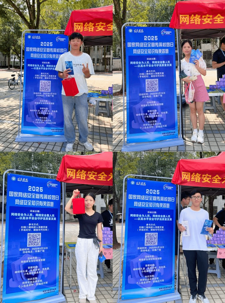 2025年国家网络安全宣传周于9月15日至21日在全国范围内举行,主题为“网络安全为人民,网络安全靠人民——以高水平安全守护高质量发展”。为积极贯彻网络安全宣传周活动精神,网络与信息化处9月16日国家网络安全宣传周“校园日”当天,在乐善广场举办网络安全知识有奖答题活动。副校长何玲、网络与信息化处相关老师、师生代表参加了活动。