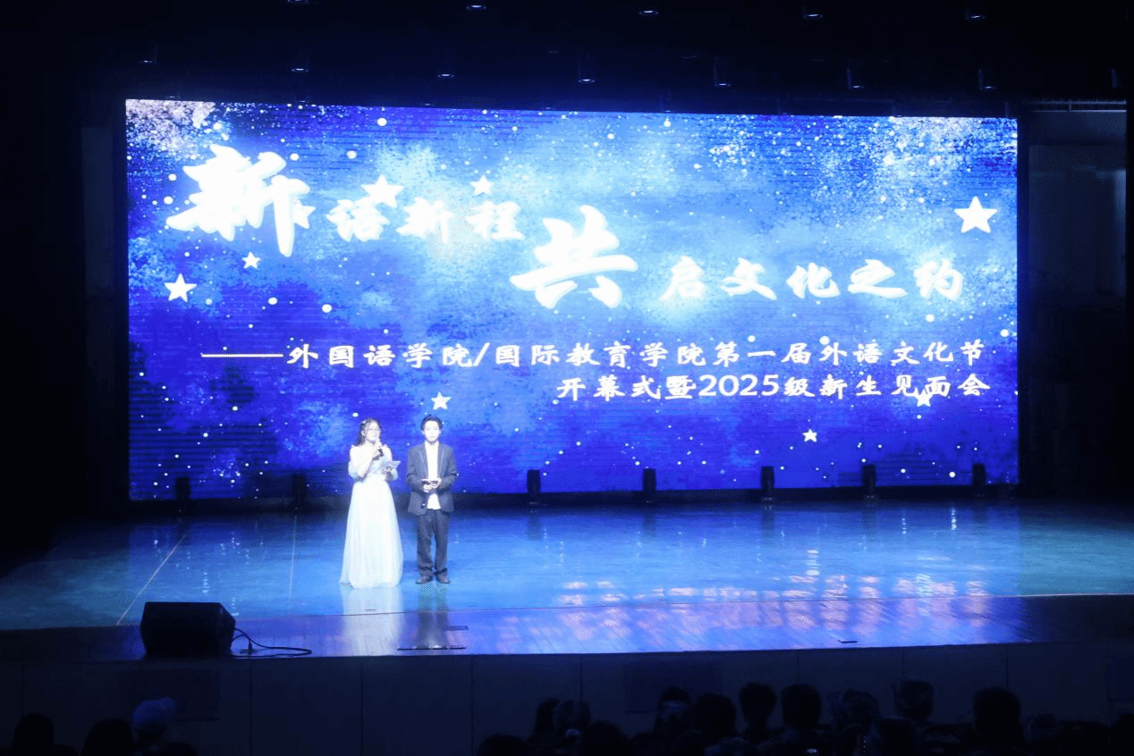9月17日下午,外国语学院在弘善讲堂隆重举行以“新语新程,共启文化之约”为主题的第一届外语文化节开幕式暨2025级新生见面会。学院领导、全体教职工和2025级全体新生欢聚一堂,共同见证这一跨越语言与文化的青春盛典。