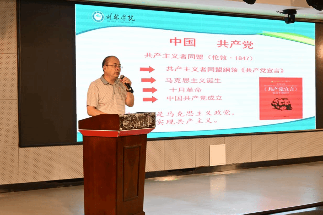 讲座期间,学院党总支书记以“不忘初心使命,勇担时代重任”为鲜明主题,紧密围绕中国共产党的光辉发展历程、性质宗旨、指导思想以及新时代大学生肩负的责任担当等方面,进行了全面且深入的讲解。讲座结合党史上的重大标志性事件和英雄模范的先进事迹,生动形象地阐述了党的伟大历史成就和优良传统作风,有力帮助新生深刻领会坚持党的领导的重大意义,认识到我们党是伟大、光荣正确的党。