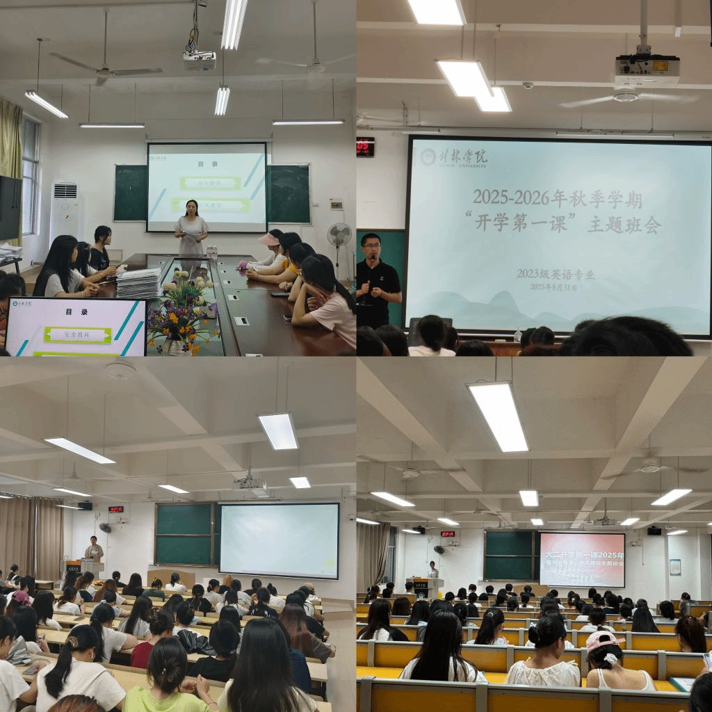 文化与传媒学院通过多元化模式召开“开学第一课”主题班会,同步融入安全教育环节,助力学生快速适应新学期;院长以“传承伟大抗战精神,争做强国青年”为主题,结合历史与文学的关联进行授课,让历史教育、文学赏析与价值引领深度融合;学院党总支书记在桂林市金雁学校2025年师生见面会暨第41个教师节庆祝大会上,以“赓续抗战精神,砥砺复兴力量”为题讲授“思政第一课”,通过回顾抗战历史、讲述桂林保卫战事迹,帮助学生强化思想自觉,筑牢家国情怀。