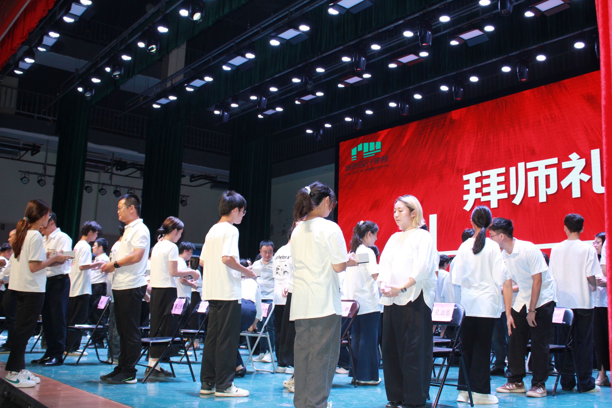 在传统拜师仪式环节,新生代表依次向老师们敬上尊师茶,教师回赠勤学礼以示勉励。随后,全体新生起立行拜师礼,齐声表达对师长的敬意与承诺。这一庄重仪式不仅传承了尊师重道的优良传统,也深化了新生对大学学习生涯的责任感。