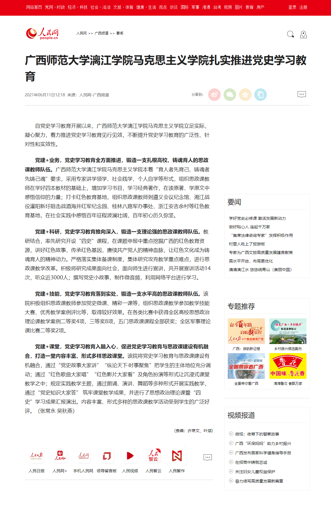 人民网:《广西师范大学漓江学院马克思主义学院扎实推进党史学习教育》