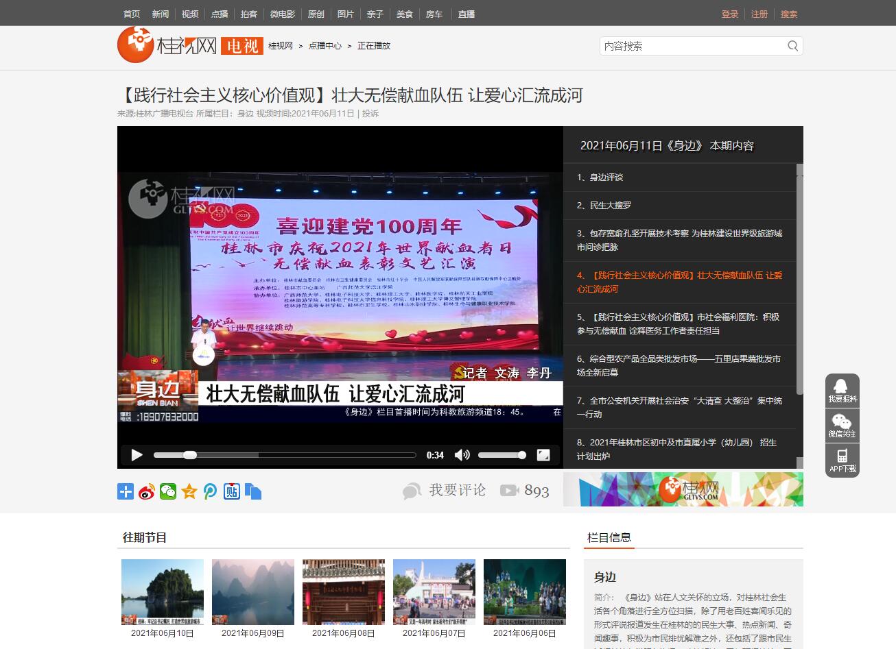6月11日,桂林电视台以《【践行社会主义核心价值观】壮大无偿献血队伍 让爱心汇流成河》报道了相关活动。