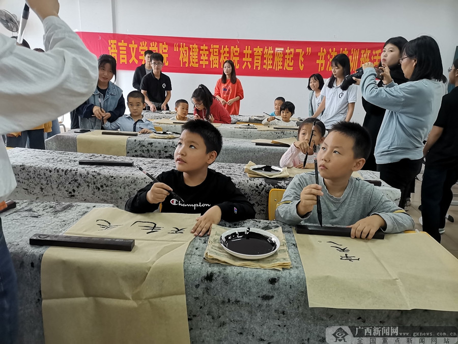桂林学院语言文学学院开展“构建幸福桂院,共育雏雁起飞”书法培训班活动。广西新闻网通讯员 刘晓玲摄
