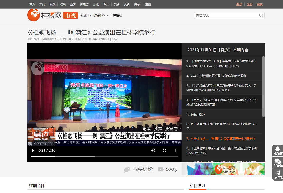 1.桂林广播电视台:《桂歌飞扬——啊 漓江》公益演出在桂林学院举行