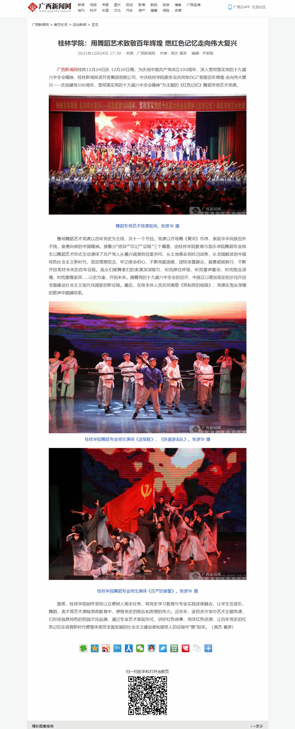 广西新闻网:《桂林学院:用舞蹈艺术致敬百年辉煌 燃红色记忆走向伟大复兴》
