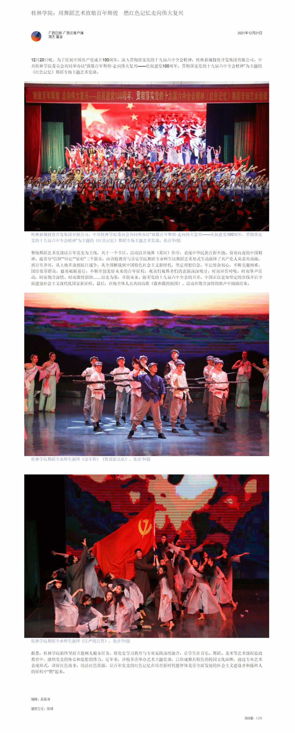 广西日报-广西云:《桂林学院:用舞蹈艺术致敬百年辉煌 燃红色记忆走向伟大复兴》