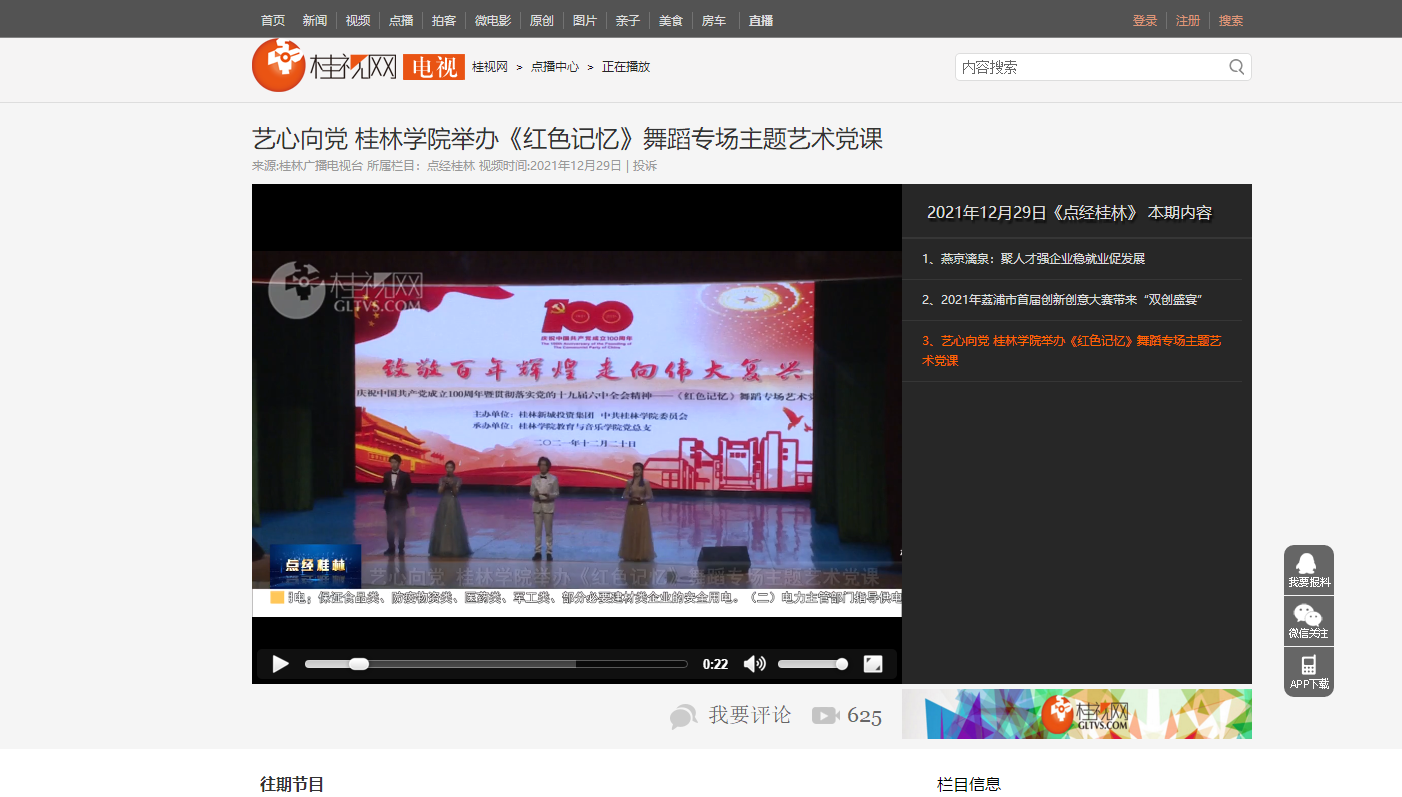 桂林电视台:《艺心向党 桂林学院举办《红色记忆》舞蹈专场主题艺术党课》