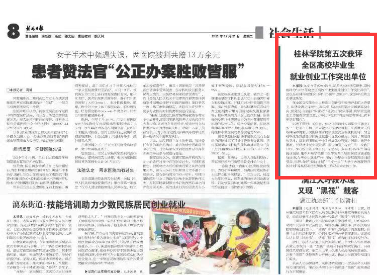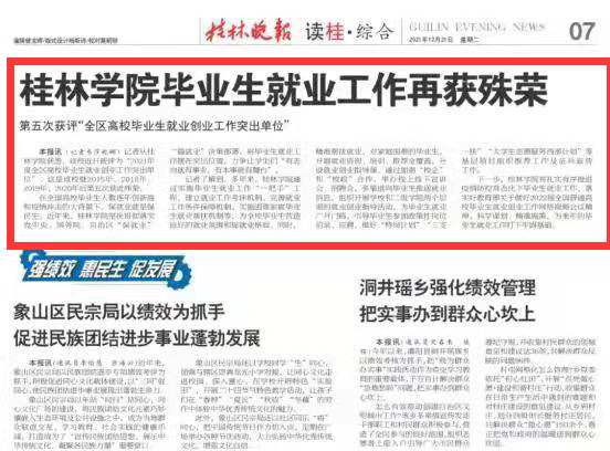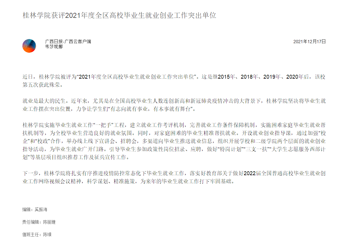 广西日报-广西云:《桂林学院获评2021年度全区高校毕业生就业创业工作突出单位》