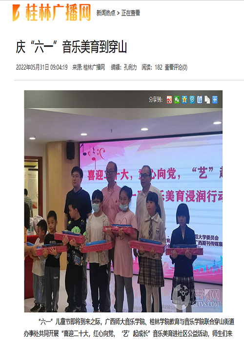 桂林广播网也关注报道了这个活动。他们报道的题目是“庆‘六一’,音乐美育到穿山”。