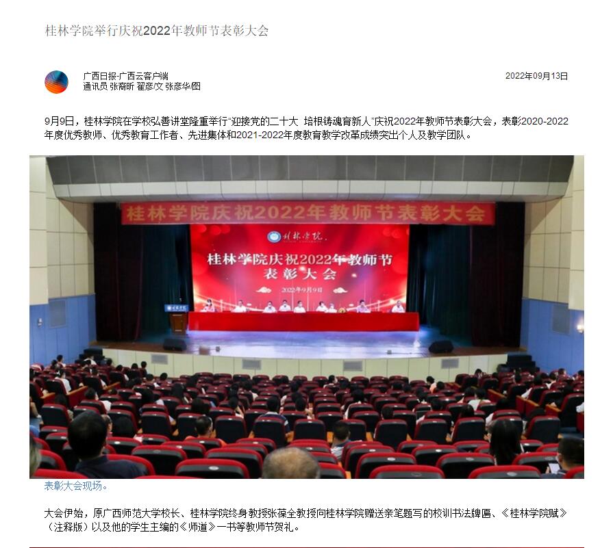 2.广西云:《桂林学院举行庆祝2022年教师节表彰大会》