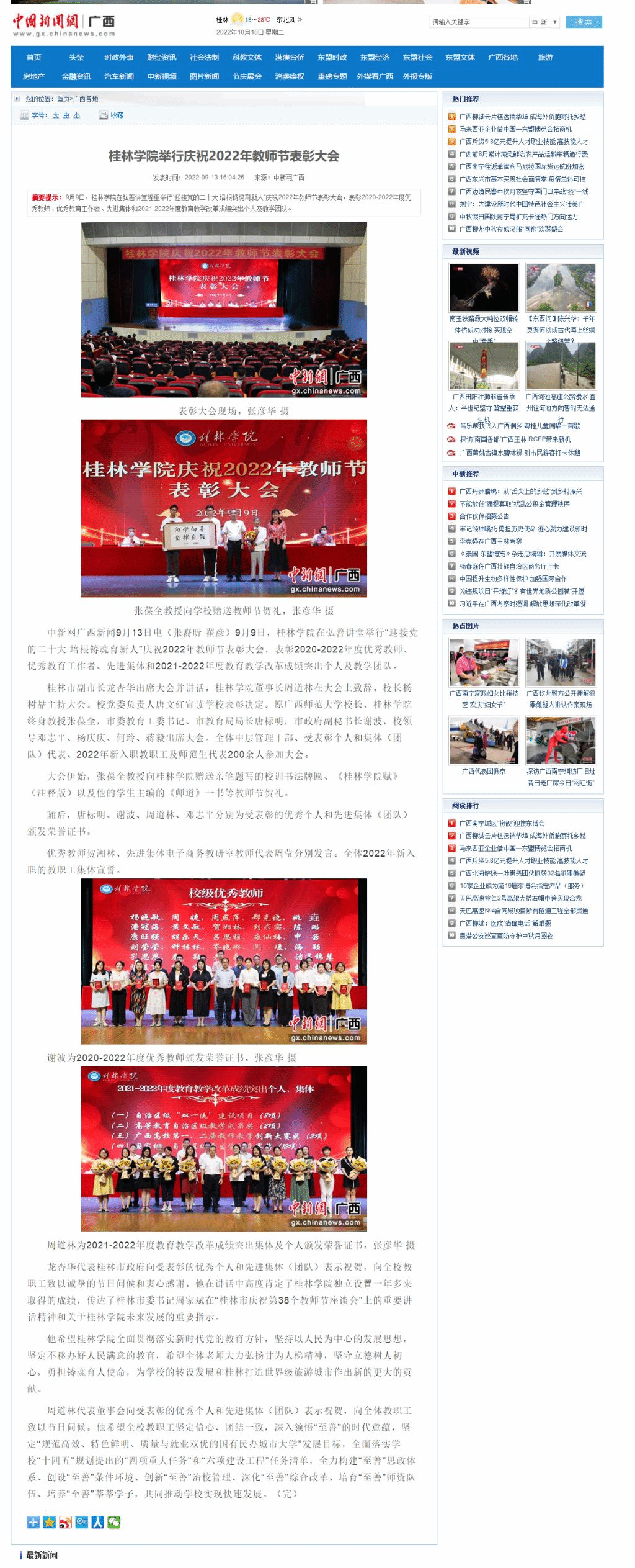 1.中国新闻网:《桂林学院举行庆祝2022年教师节表彰大会》