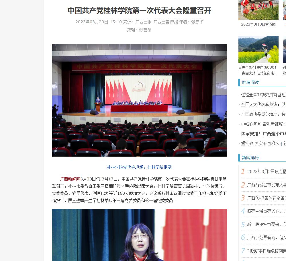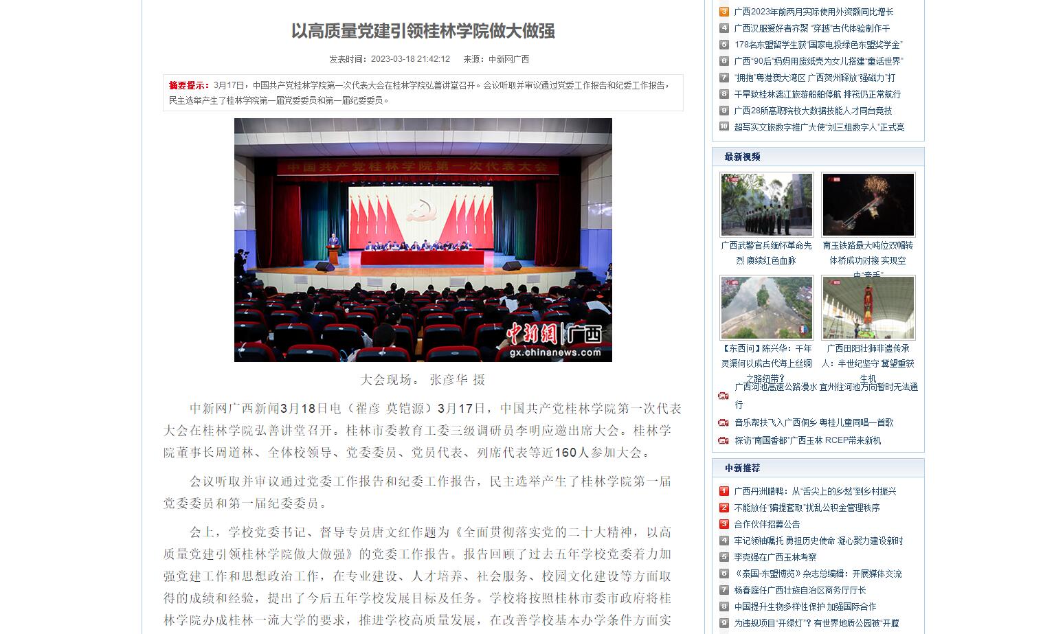2.广西新闻网:《中国共产党桂林学院第一次代表大会隆重召开》