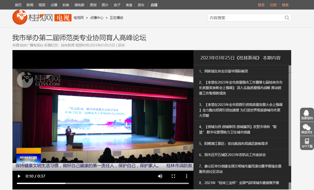桂林电视台:《我市举办第二届师范类专业协同育人高峰论坛》