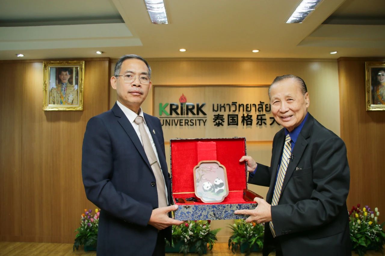 桂林学院杨树喆校长就学校的概况、发展历程以及国际合作情况等方面做了介绍,近年来,两校在学生实习、双方教师共同参与学术研讨会等方面进行了实质性的合作交流,今年 9 月,在南宁举办的东盟职教展上,两校领导也进行会面与合影,这都是两校开展合作的良好开端,期待通过此来泰交流能加深双方的合作关系,更好地建立国际化人才培养平台,实现互利共赢。