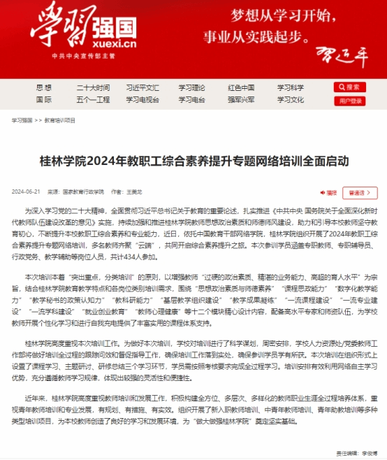 学习强国:《桂林学院2024年教职工综合素养提升专题网络培训全面启动》
