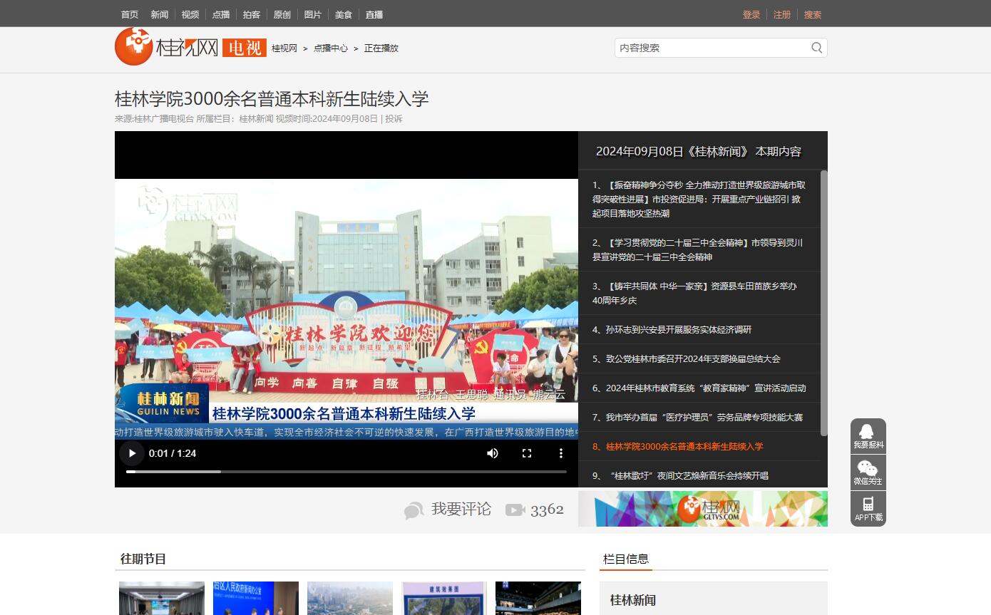 桂林广播电视台、桂林日报等新闻媒体对我校2024级新生入学报到工作进行了宣传报道。