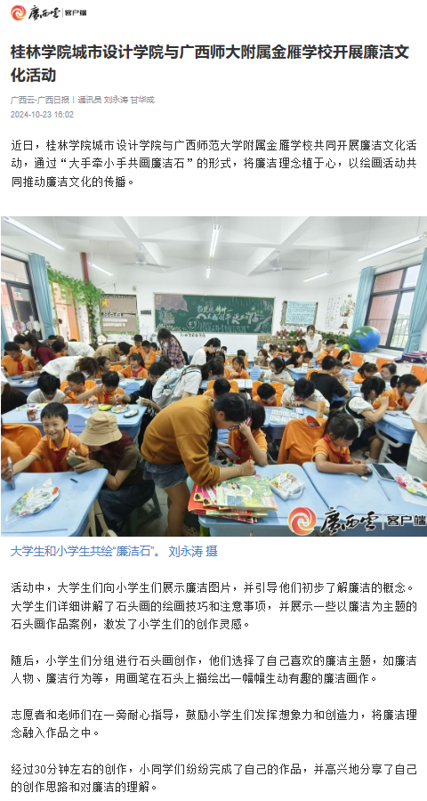 广西教育新闻网:《桂林学院城市设计学院与广西师大附属金雁学校开展廉洁文化活动》