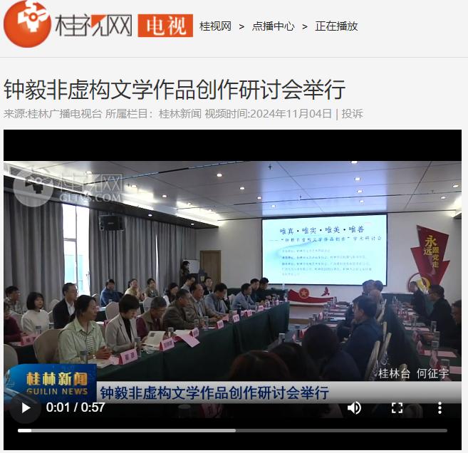 媒体的广泛参与为此次研讨会增添了更多色彩,桂林晚报连续刊登《电视与文学的双向奔赴——阅读钟毅的电视与非虚构文学作品》、《钟毅:文以载道,薪火永续》两篇文学评论文章,奏响了本次研讨会前奏。桂林电视台、桂林晚报、桂林日报、人民日报海外网、中国网、桂林生活网、消费日报、法制中国网、桂林文联公众号桂林文艺等多家媒体,纷纷派出资深记者进行现场报道,通过文字、图片、视频等多种形式,对本次研讨会进行了全面报道,将研讨会的精彩瞬间和深刻见解传递给广大公众,展示了传媒与新闻学院在学术研究与社会影响力方面的卓越成就。