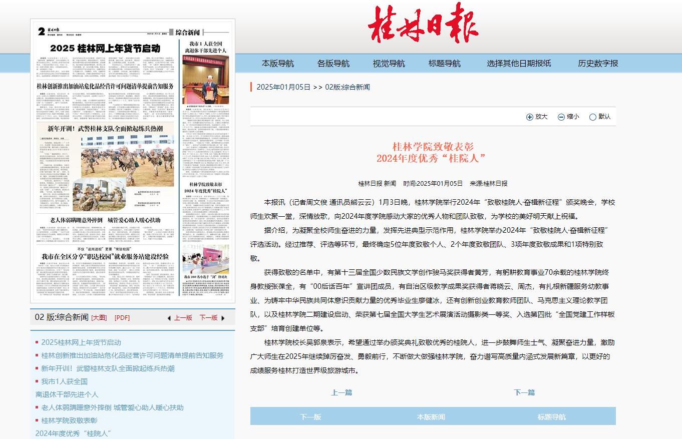桂林日报:《桂林学院致敬表彰2024年度优秀“桂院人”》