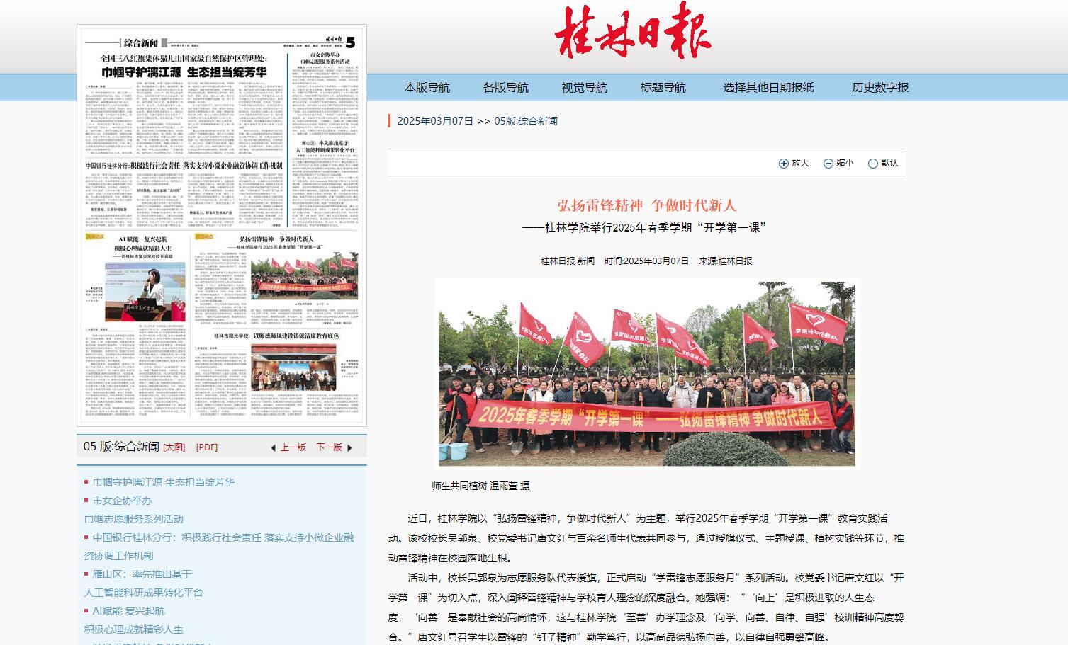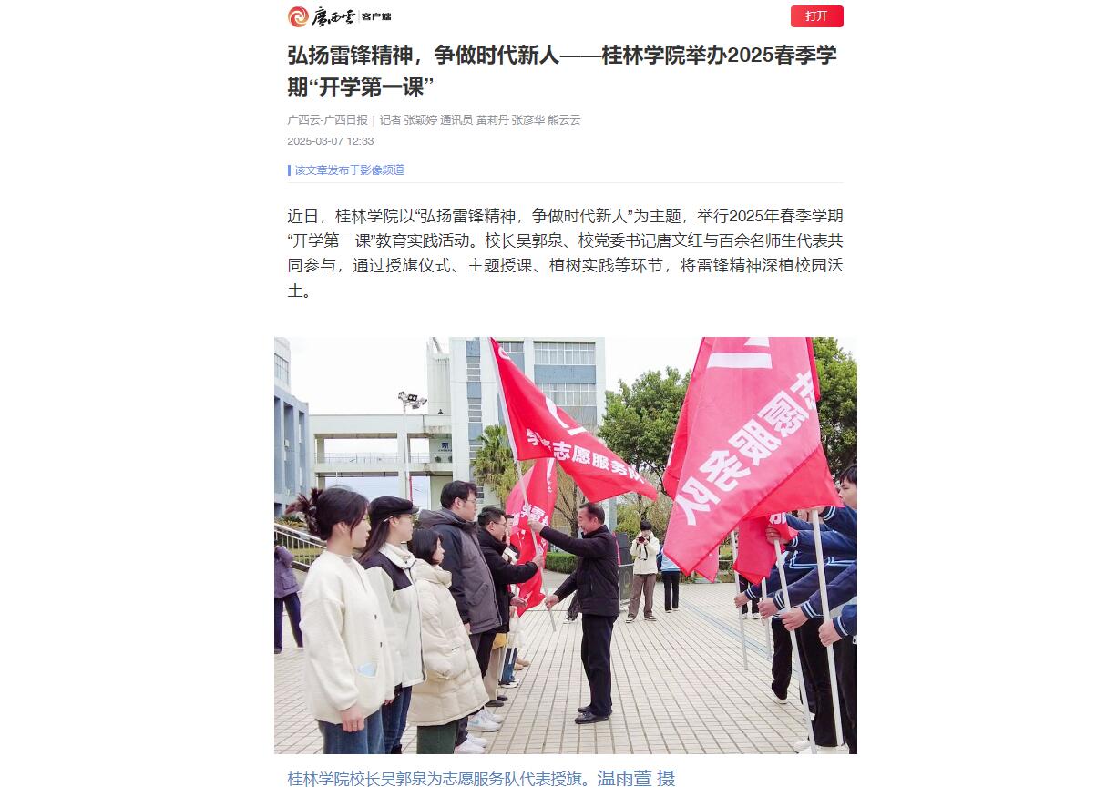 2.桂林日报:《弘扬雷锋精神 争做时代新人——桂林学院举行2025年春季学期“开学第一课”》