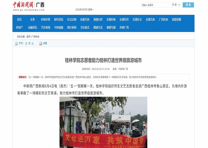 中国新闻网:《桂林学院志愿者助力桂林打造世界级旅游城市》