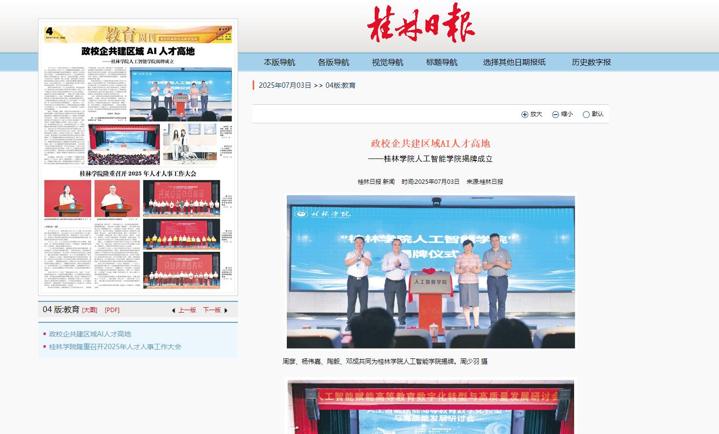 桂林日报:《政校企共建区域AI人才高地——桂林学院人工智能学院揭牌成立》