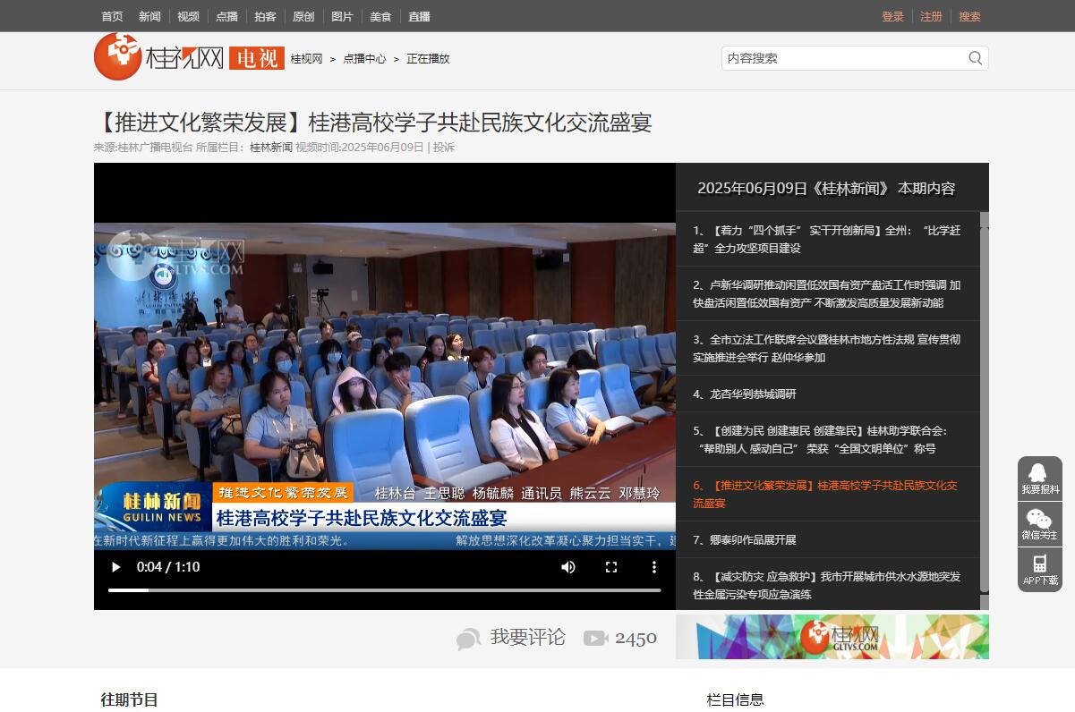 桂林广播电视台:《【推进文化繁荣发展】桂港高校学子共赴民族文化交流盛宴》