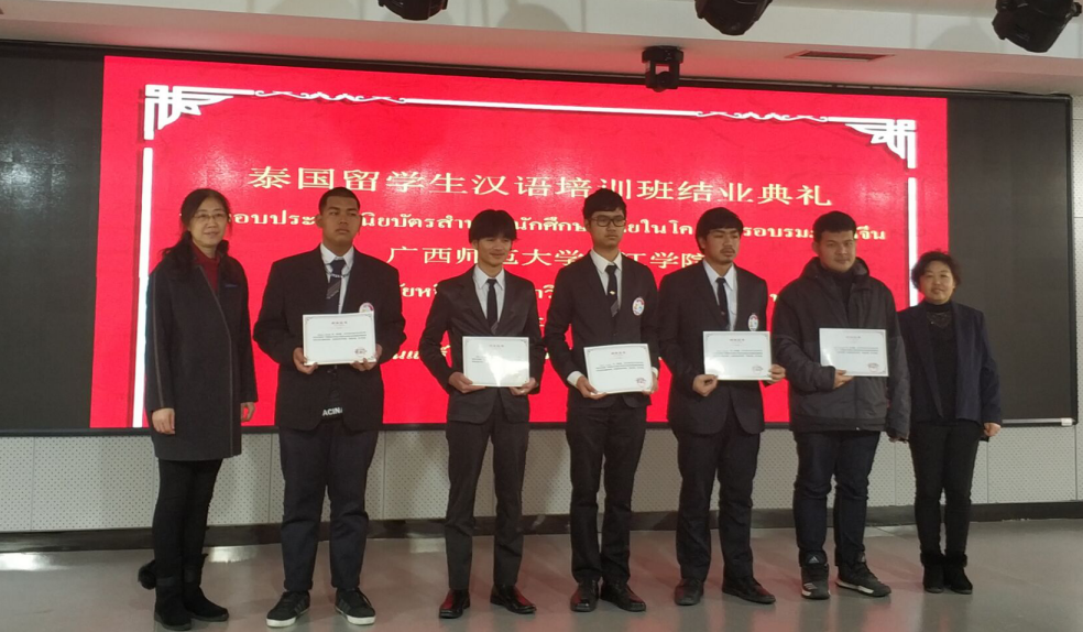 2月23日下午,我校泰国留学生汉语培训班结业典礼在至善讲堂举行。校党委书记唐文红出席结业典礼并致辞。合作发展处、语言文学学院主要负责人、任课教师、泰语专业学生代表、留学生带队教师及全体泰国留学生参加了结业典礼。柳州铁道职业技术学院教师代表应邀参加。