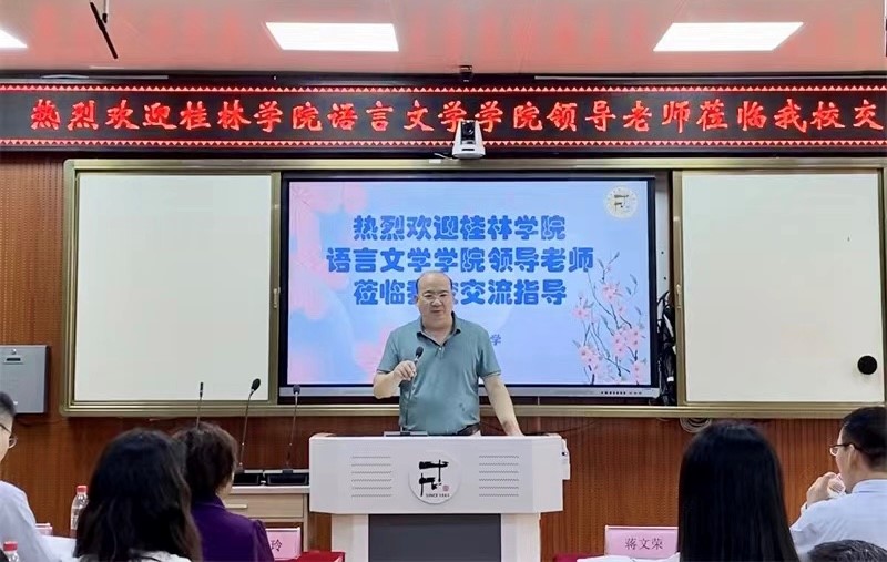为加强基础教育和高等教育的联动,深入推动高校毕业生见习、实习、研习、就业等工作,4月28日下午,语言文学学院院长何玲、副院长张超锋携语言文学学院各教研室主任与骨干教师代表一行13人赴桂林市第十九中学开展协同育人论坛活动。桂林市第十九中学校长蒋文荣,副校长姚培鉴、副校长程晓玲和副校长潘宇以及29位实习生指导老师出席本次会议。会议由桂林学院语言文学学院张超锋副院长主持。