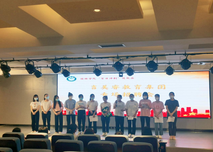 为统筹推进毕业生就业工作,积极助力毕业生更高质量就业。5月29日,由学校就业创业指导中心主办,教育与音乐学院、体育与健康学院承办的“桂林学院“百日冲刺”促就业——吉美睿教育集团专场招聘会”在至善讲堂举行,吉美睿教育集团旗下(含加盟)桂林、柳州、南宁地区共9所幼儿园参与此次专场招聘,为我校学前教育专业、体育教育专业毕业生、实习生提供80多个就业实习岗位,我校共有200余名2020届、2023届毕业生参加宣讲面试。
