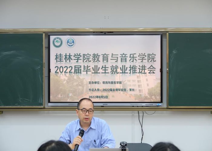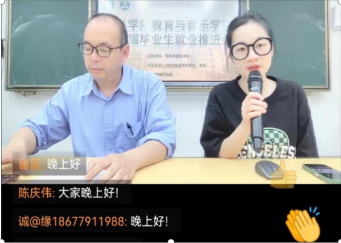 当前正值高校毕业生求职关键期。为积极应对疫情带来的影响,加快推动家校促就业工作进展,全力促进2022届高校毕业生就业。教育与音乐学院于6月5日晚,以线下和线上双会场同步直播形式,顺利召开教育与音乐学院顺利召开2022届毕业生就业推进会。教育与音乐学院党总支书记周杰、毕业班辅导员张梅洁、赵红、余华、2018全体学生和家长参与了此次会议。