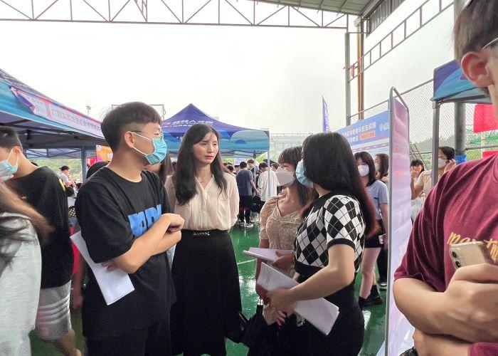 教育与音乐学院领导班子高度重视2022届毕业生就业和2019级实习工作,认真落实访企拓岗工作要求,由熊云云副书记带队在会场与用人单位进行交流,详细了解单位招聘情况和需求,鼓励2022届毕业生、2019级实习生主动应聘,并现场对学生进行就业指导。