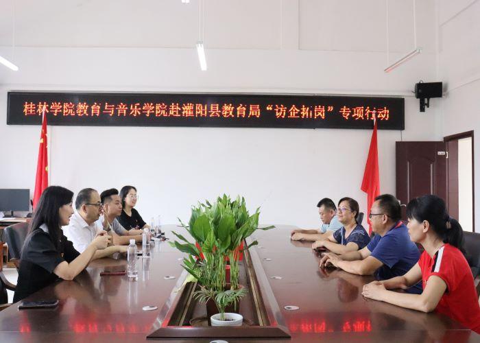 为深入贯彻落实教育部“全国高校书记校长访企拓岗促就业专项行动”,充分挖掘就业资源,巩固拓展就业渠道,深入开展校局(校校)合作,6月29-30日,教育与音乐学院党总支书记周杰率队赴灌阳县教育局开展“访企拓岗”促就业专项工作。教育与音乐学院相关负责人一行6人参加了此次访问调研。调研座谈会在灌阳县红军小学进行。
