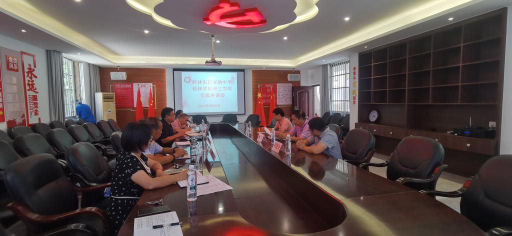 26日上午,林庆南一行到达桂林田家炳中学,与甘培荣校长等校领导在会议室进行交流座谈。座谈会上,甘校长首先对桂林学院理工学院一行的来访表示热烈欢迎,然后在简单介绍了田家炳中学的发展概况后对双方在逐步开展多学科的合作寄予希望,希望双方多多交流,优势互补,互相促进。林庆南院长在会上对广西师范大学漓江学院转设为桂林学院的情况进行汇报之后重点对理工学院的学科发展情况做了介绍,希望今后在入选自治区级一流本科专业的数学与应用数学专业的建设方面能得到田家炳中学的协助,并对学生的见习、实习等工作提供方便。会上,双方与会人员就本科毕业生职业素养、通用能力及教师岗位需求等问题进行了积极探讨,为两校的进一步合作奠定了坚实的基础。